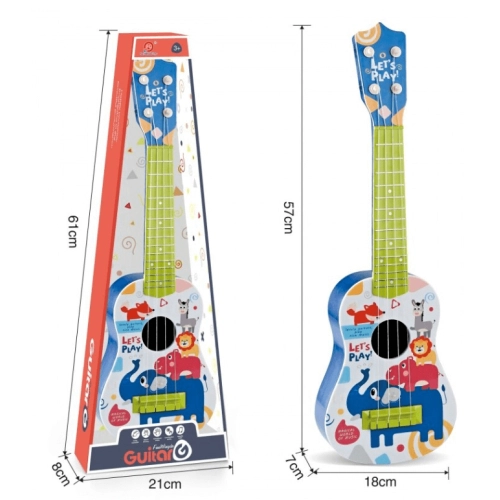 Размери на китарата: 57 см височина, 18 см широчина, 7 см дълбочина – удобна за хващане и лесна за свирене